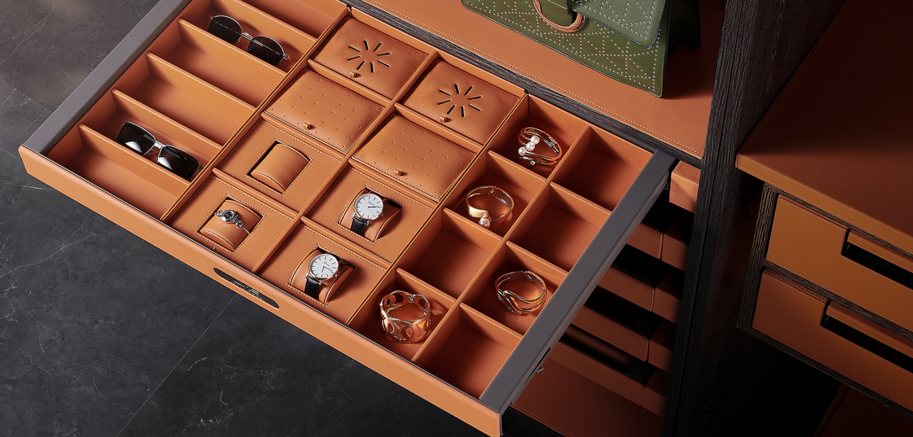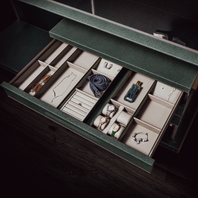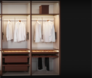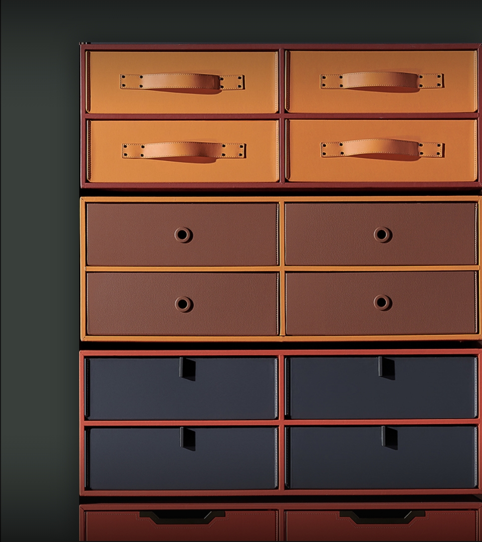 我們選用頂級皮革材料和精湛的製作工藝,打造出時尚優雅的衣櫃收納系統, 讓您的衣物無論放置在其中,都能保持完美的狀態和質感。