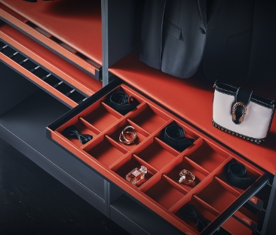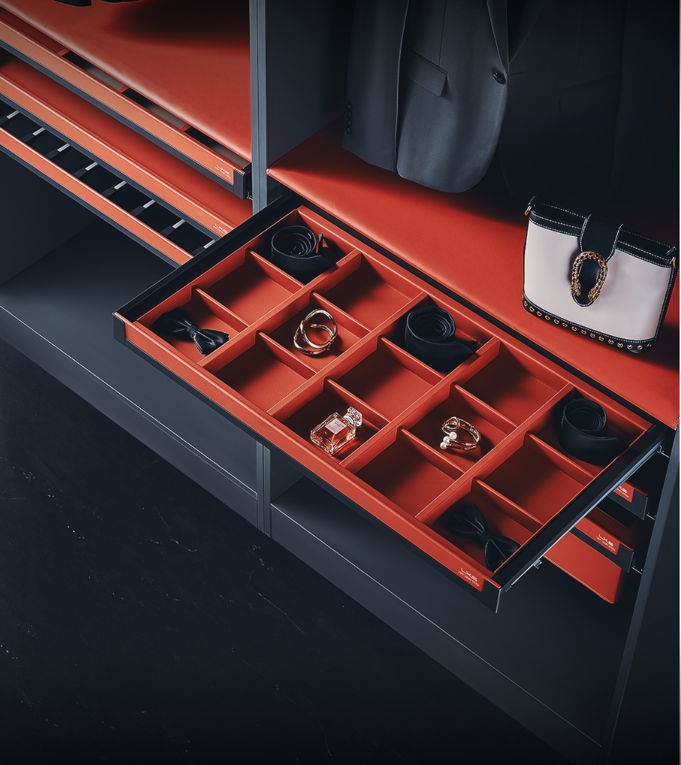 我們的皮革衣櫃收納系統都能為您提供一個有序且易於收取的空間。